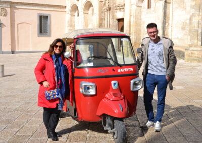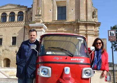 Un classico è il tour completo del centro storico e dei Sassi della durata di un’ora con soste panoramiche e la possibilità di scoprire curiosità e aneddoti. Il tour è completamente personalizzabile: il punto di partenza, quello di arrivo e tutti i dettagli del percorso possono essere definiti insieme a Vito, che è sempre pronto e disponibile ad ascoltare le esigenze dei clienti e a consigliare l’itinerario ideale.